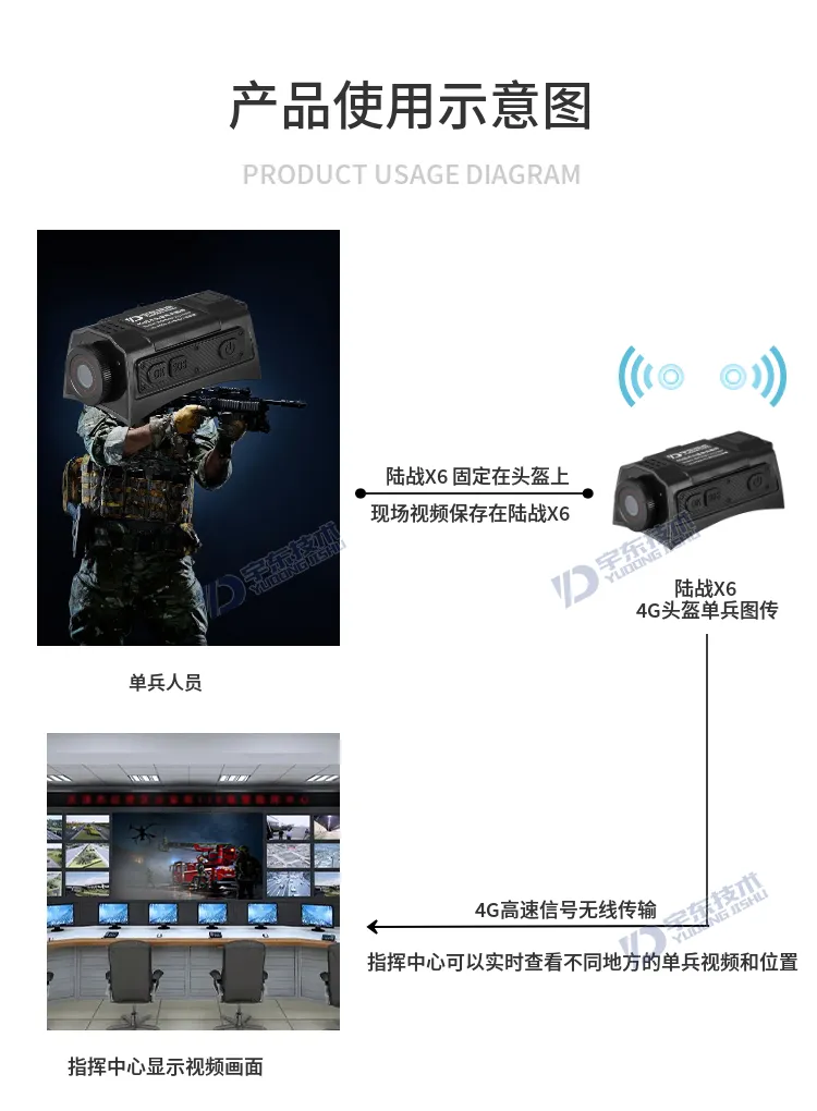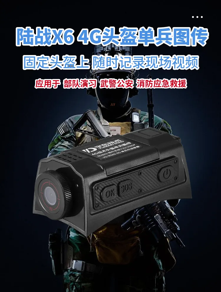 陸戰(zhàn)X6 4G戰(zhàn)術(shù)頭盔單兵無線圖傳是針對武警,特警,移動執(zhí)法取證、行政監(jiān)管等單人便攜式監(jiān)控需求應(yīng)用場景開發(fā)的專用設(shè)備,該產(chǎn)品采用高速處理器和嵌入式Linux操作系統(tǒng),集超低照度彩色攝像機、音頻、4G和Wi-Fi無線通訊模塊、北斗、存儲、報警等模塊,配置高清夜視攝像頭及無線藍牙耳機。設(shè)備可通過4G、Wi-Fi無線網(wǎng)絡(luò)進行實時視音頻信息傳輸、語音對講等功能;協(xié)同后端功能完善的監(jiān)控調(diào)度指揮平臺系統(tǒng)實現(xiàn)針對戶外移動式個體的遠程調(diào)度指揮功能。