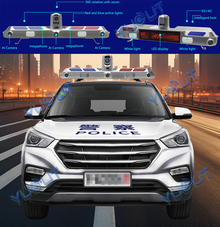 YUOUT mobile vehicle solutions can combine with various types of vehicle PTZ, front-end control PAD, back-end monitoring platform and other mobile factors to meet the core requirements of law enforcement, such as 360° video recording, 5G/4G/wireless image transmission, positioning, voice communication, personnel and vehicle inspection and control, and illegal activities capture etc.