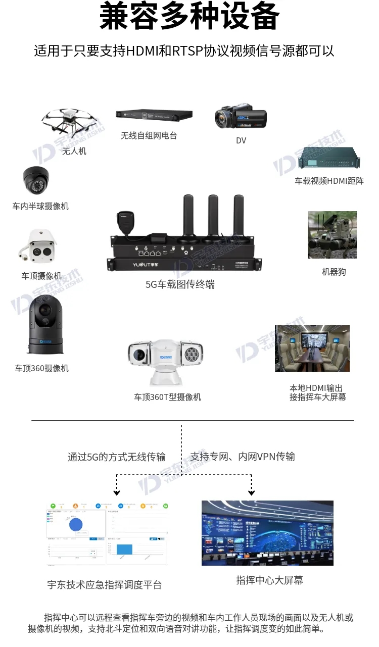 YD-GB8010-1U產品采用H.265超高壓縮算法,無線網絡自適應視頻編碼和傳輸技術,最大限度地有效利用傳輸帶寬,保證視頻傳輸的清晰度和流暢性,在無線網絡帶寬不是很穩定的環境下,傳輸效果遠超國內外同類產品。設備遠程視頻瀏覽、遠程控制、地理位置定位、語音對講等,它可以幫助客戶隨時隨地了解車輛的實時狀況和位置,同時支持遠程指揮和調度。
