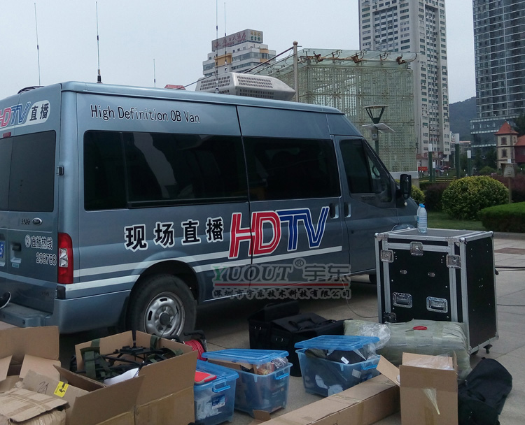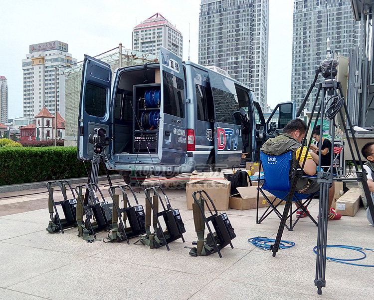直播車為中心,工作攝像人員在不對街道拍攝畫面無線傳輸到直播車,中間會存在各種阻擋,比如,人、車、樹、樓等等,對無線圖傳的延時,距離和傳輸速度很重要,宇東無線圖傳助力外場直播車順利進行完成直播任務。