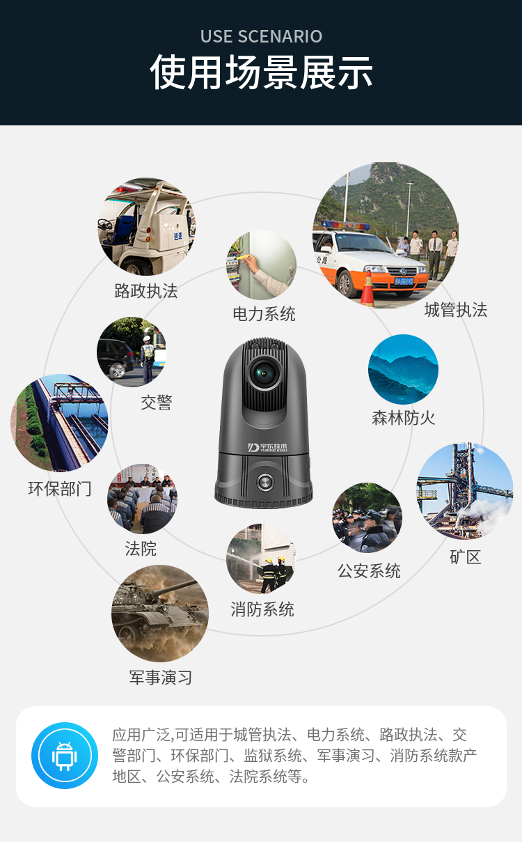 4G高清AI智能布控球 * AI智能識(shí)別,更清晰·快傳輸·識(shí)強(qiáng) * 輕量化,整機(jī)重量?jī)H1.8KG * Android 8.1 8核,20倍/36倍光學(xué)變焦 * AI智能識(shí)別,可人臉識(shí)別、車輛識(shí)別、安全帽識(shí)別、工服識(shí)別、銘牌識(shí)別等等。 * 2T大容量,支持雙sim卡、雙t卡,最高2T內(nèi)存 * 在線傳輸,作業(yè)現(xiàn)場(chǎng)隨時(shí)看,可視化平臺(tái)調(diào)度指揮 * 電子地圖實(shí)時(shí)檢測(cè)人員、設(shè)備、事件、區(qū)域信息 * 第一時(shí)間掌握現(xiàn)場(chǎng)情況,遠(yuǎn)程決策,統(tǒng)一協(xié)調(diào)?